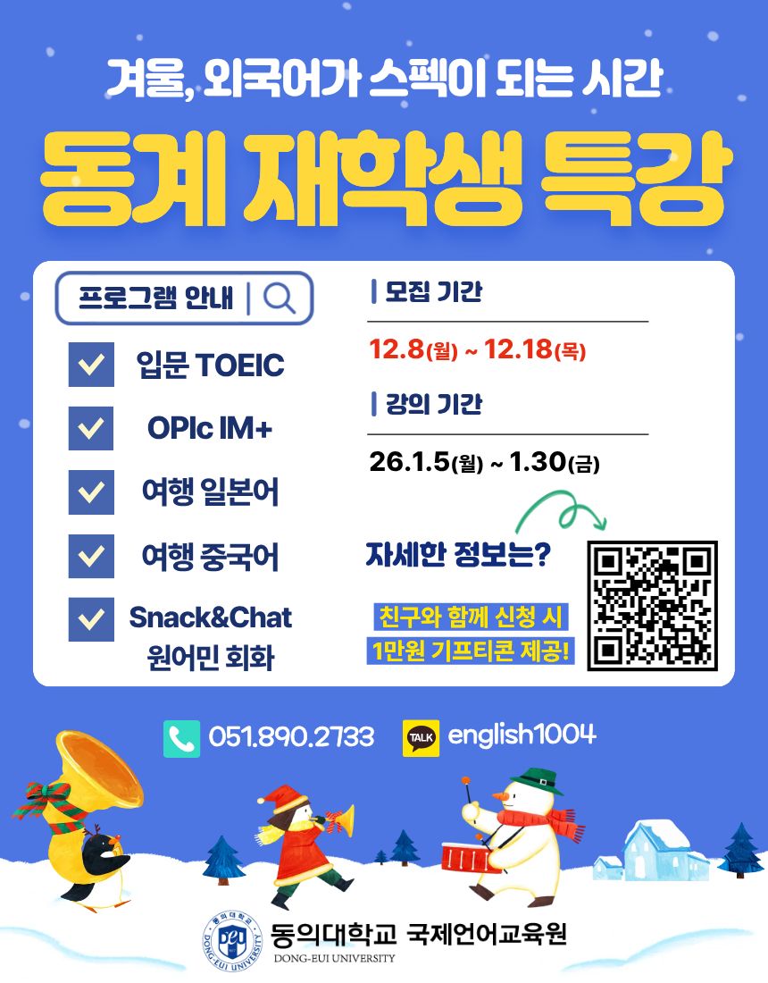[안내] 2025학년도 동계 외국어 특강 프로그램 수강생 모집 안내
